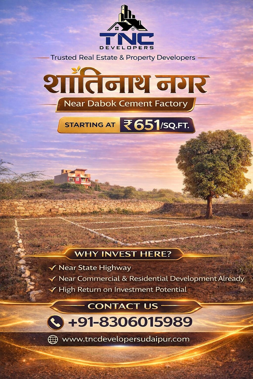 TNC Developers, Udaipur's most reliable and esteemed property Realtors. With a legacy of trust and a commitment to excellence, we specialize in helping you find the perfect property that meets your needs and exceeds your expectations. Whether you are looking for a new home, a commercial space, or an investment opportunity, TNC Developers is your go-to partner in Udaipur’s vibrant real estate market.
